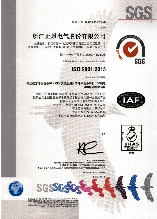 正原電氣已獲體系認(rèn)證:已通過ISO9001、ISO14001、ISO45001管理體系認(rèn)證 。